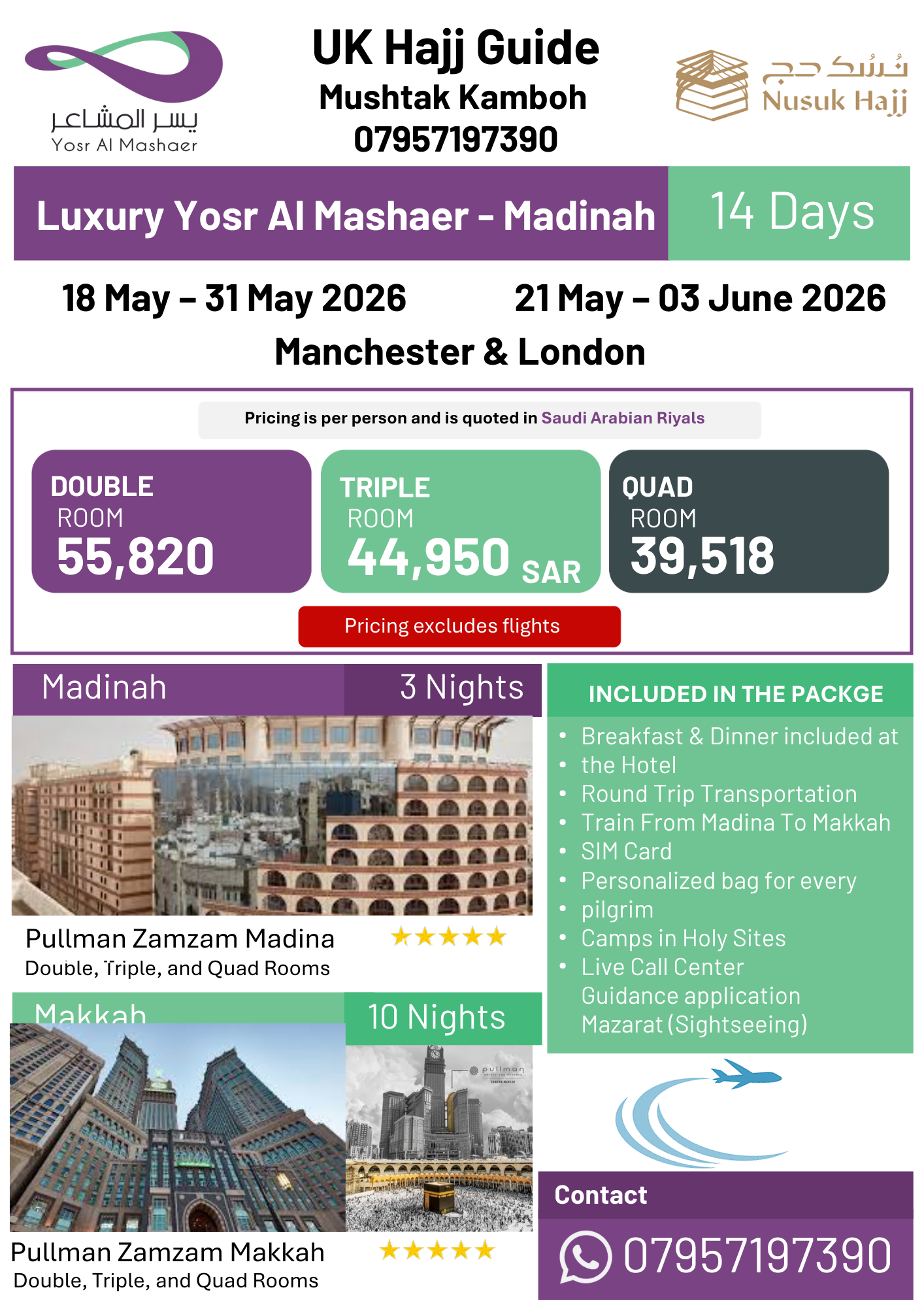 All Hajj packages purchased via the Nusuk Hajj website will include your Hajj Visa and Medical Cover.
